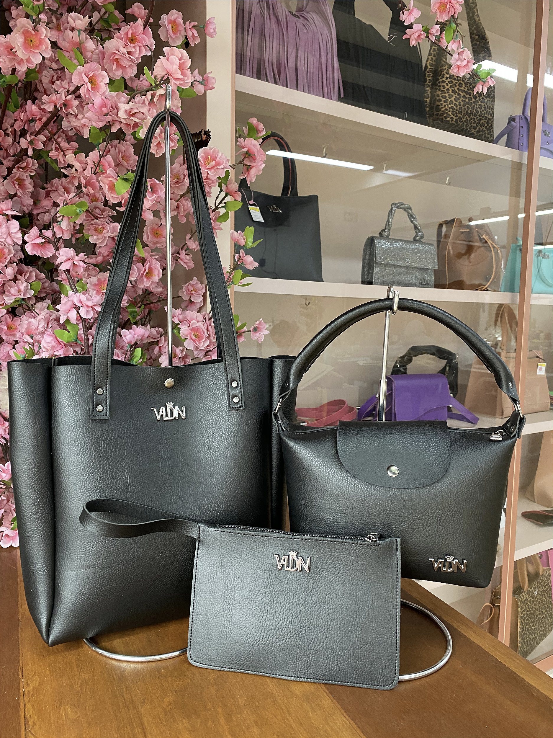 Kit 3 peças modelo Dany super versátil feito pra Você que procura praticidade contém no kit 1 bolsa ombro fechamento botão imã medidas aproximadas 26cm comprimento por 30cm altura por 10cm lateral.1 bolsa de uso transversal é de mão com medidas 24cm comprimento por 16cm altura por 7cm lateral ,fechamento zíper e botão ímã .1 carteira fechamento zíper com alça de mão, medidas 21cm comprimento por 14cm altura .material pvc não descasca .super leve e fácil limpeza com detergente neutro e pano úmido